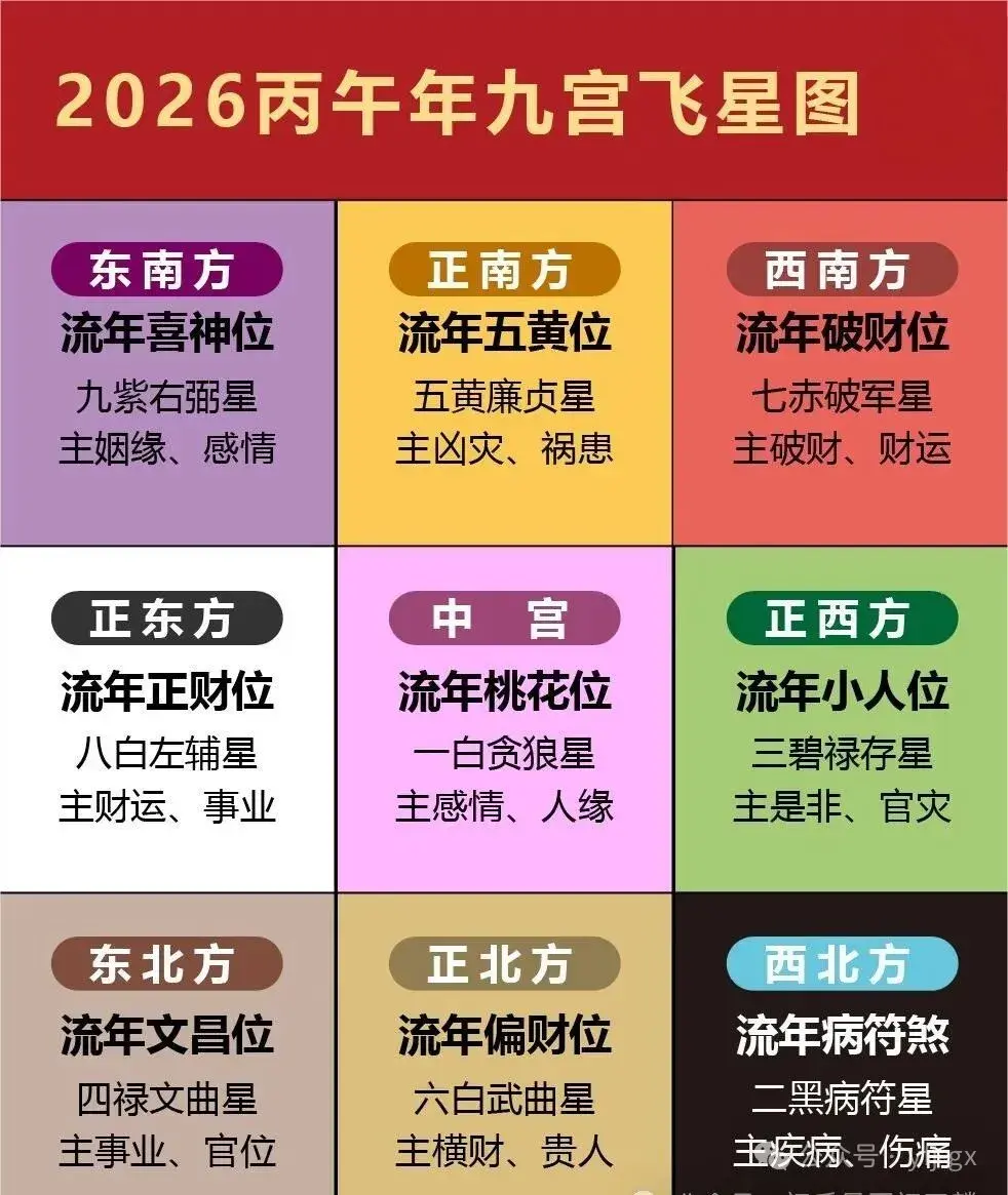 2026年为丙午马年,五行属火,九宫飞星随流年轮转重新布局,各方位的星曜能量将深刻影响家居、事业、婚姻、财运及健康运势。
